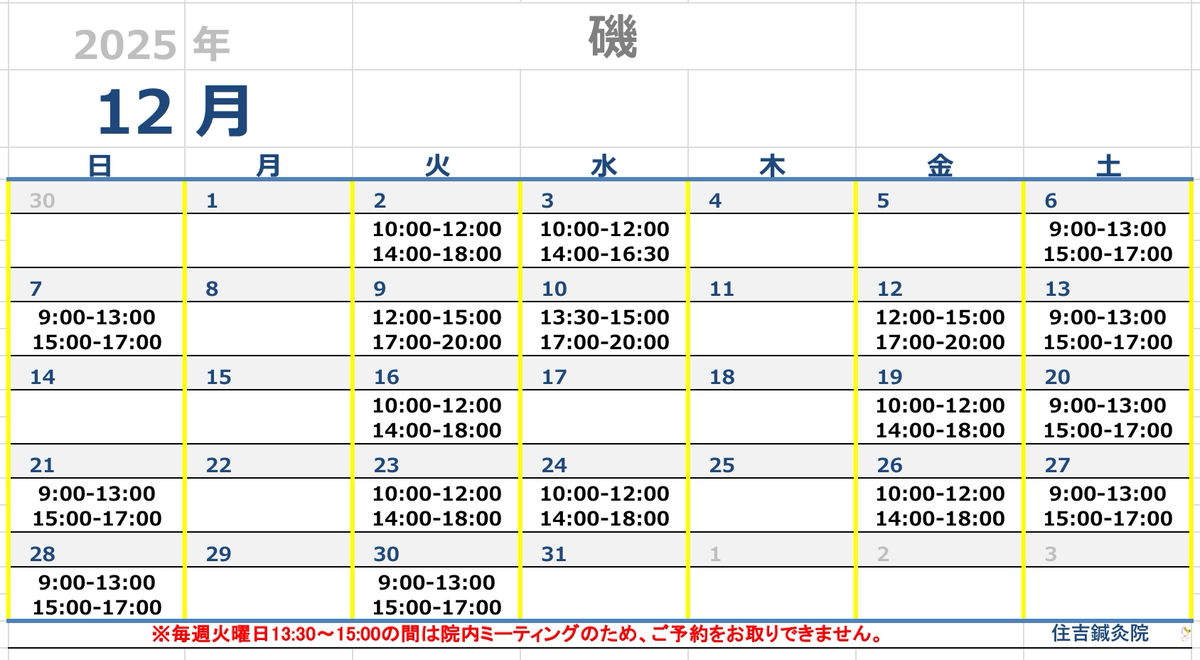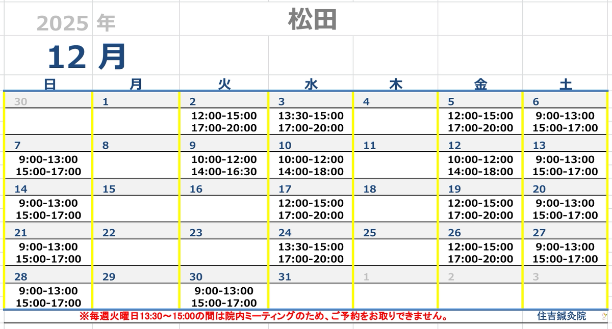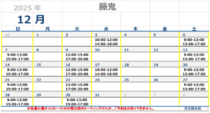 12月担当勤務のお知らせ
