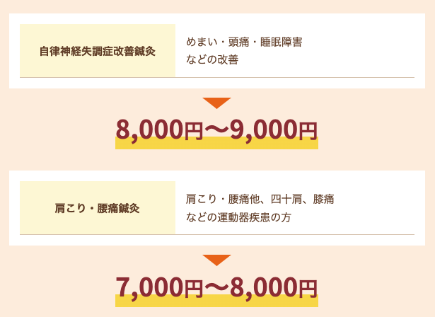 内容により変動する為、以下はあくまで代表的な症状の施術目安になります。